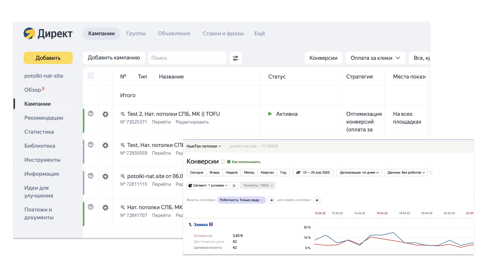 Но! В Яндексе трафик действительно горячее: люди уже искали натяжные потолки и мы точно знаем их потребность!