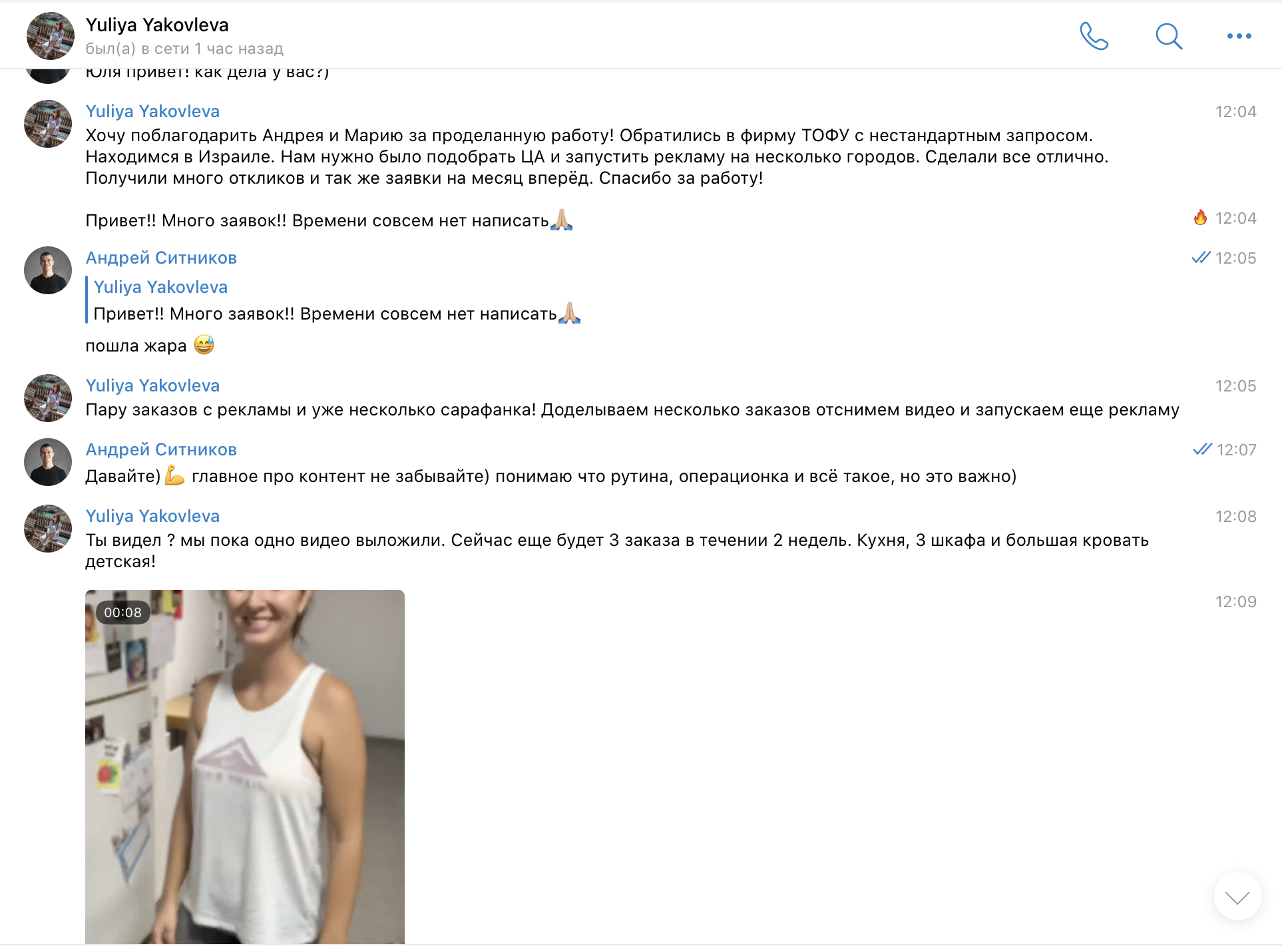 Ребята довольны, взяли 4 заказа в работу и уже пошла сарафанка!