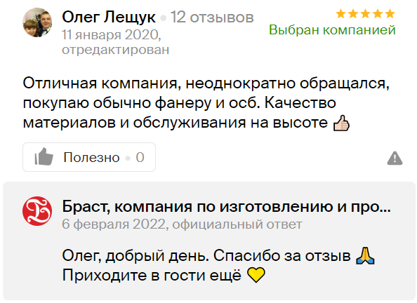 «Браст» — надёжная компания с 12-летним опытом. Нам важен каждый клиент и мы дорожим репутацией. Посмотрите что о нас говорят клиенты.