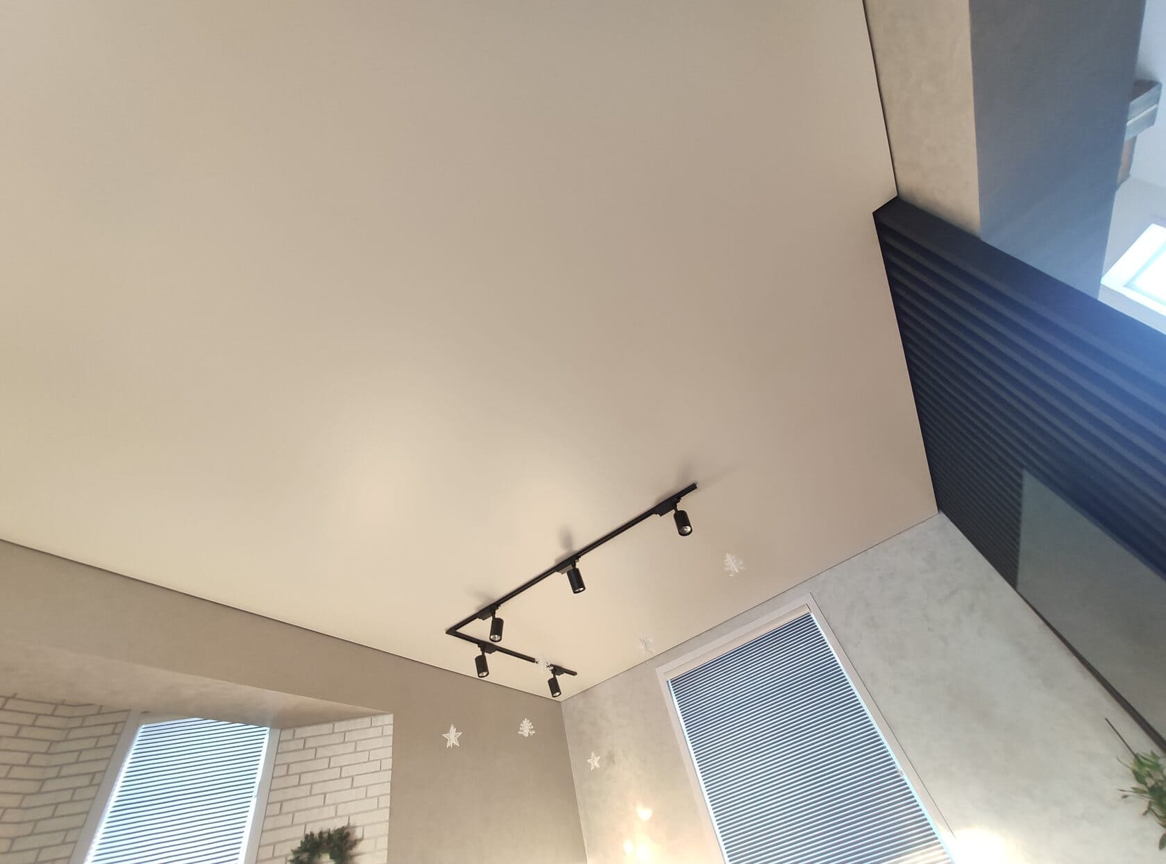 В отличие от глянцевых, матовые полотна не имеют зеркальных свойств и напоминают покрашенные или оштукатуренные потолки.