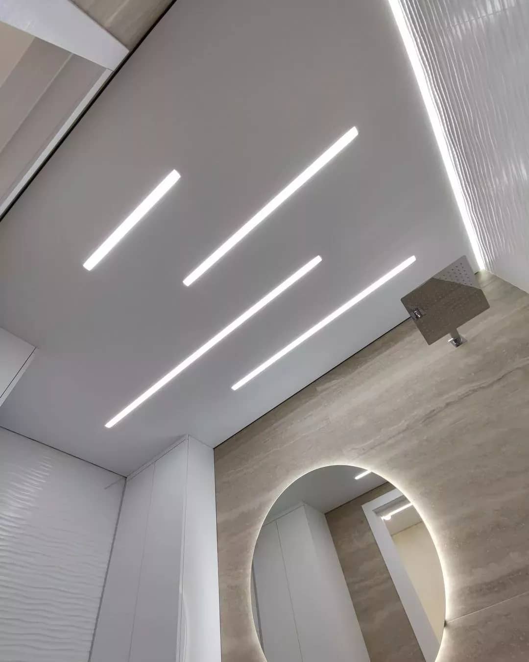 Глянец зрительно увеличивает пространство, обладает способностью отражать до 99% света. Благодаря этому в помещении с глянцевыми натяжными потолками становится светлее и просторнее. Универсальное покрытие подойдёт для ванной, кухни и любой другой комнаты.